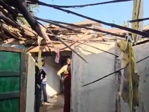ब्लास्टिंग की वजह से घरों के छप्पर गिरे
