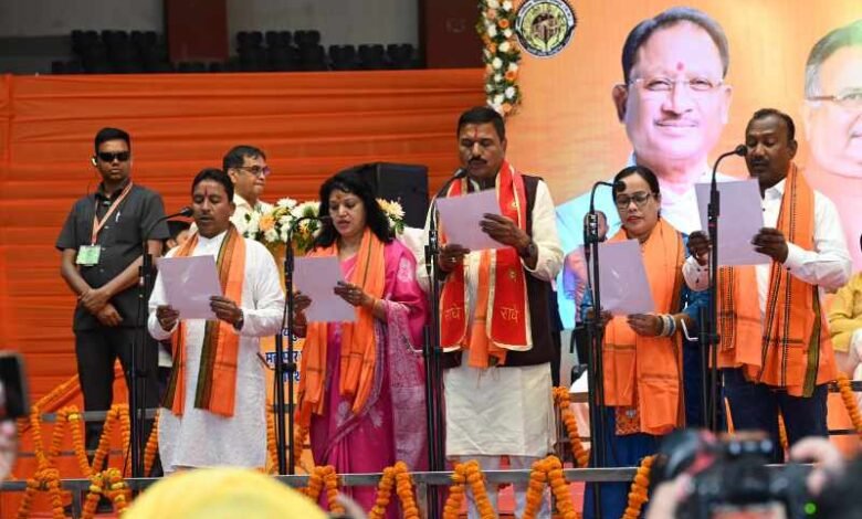 महापौर मीनल चौबे ने मुख्यमंत्री विष्णु देव साय की उपस्थिति में शपथ ग्रहण किया।इस अवसर पर मुख्यमंत्री श्री विष्णु देव साय ने सभी नव-निर्वाचित जनप्रतिनिधियों को बधाई देते हुए विश्वास व्यक्त किया कि नवनिर्वाचित महापौर और पार्षदगण अटल विश्वास पत्र में किए गए प्रत्येक वादे को पूरा कर रायपुर को स्वच्छ, सुव्यवस्थित एवं समृद्ध शहर बनाने की दिशा में दृढ़ संकल्प के साथ कार्य करेंगे।