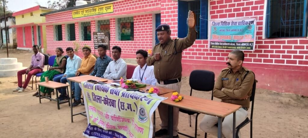 की स्कूलों में विधिक जागरूकता शिविर का आयोजन किया गया आपको बता दें कि कोरबा जिला मुख्यालय से 70 किलोमीटर की दूरी पर स्थित है ग्राम गुरमा गांव जो वर्तमान समय में खतरनाक जंगली जानवरों का हाथी प्रभावित क्षेत्र हैं जहां ग्रामीण आदिवासी कक्षा पहली से कक्षा आठवीं तक पढ़ने वाले छात्र-छात्राओं को मोटर दुर्घटना अधिनियम, सड़क सुरक्षा, यातायात नियम, बलात्कार : एक अपराध,बाल अपराध अधिनियम, बाल विवाह निवारण अधिनियम,1929