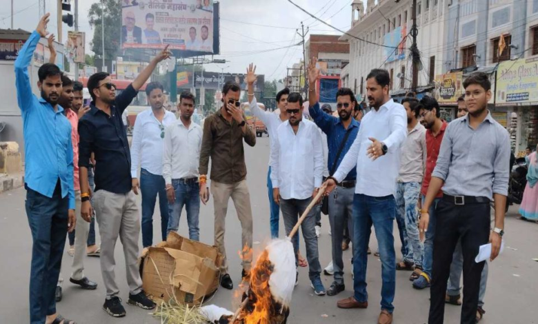 मठाधीश और माफिया वाले बयान पर फंसे अखिलेश, भाजयुमो ने फूंका पुतला, कहा- ये गंदी मानसिकता का परिचायक, हिंदू समाज इसका जवाब देगा
