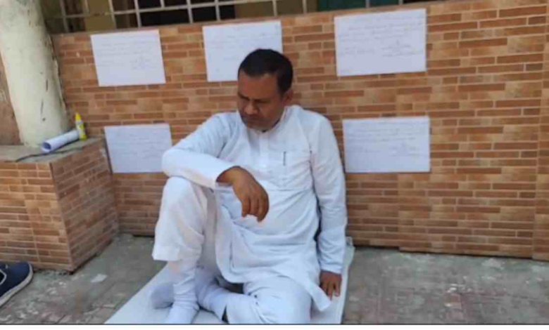 बिलासपुर. छत्तीसगढ़ में प्रत्याशियों का ऐलान होते ही कांग्रेस में कलह शुरू हो गया है. कार्यकर्ता घोषित प्रत्याशियों के विरोध में खुलकर सामने आए हैं. बिलासपुर लोकसभा से देवेंद्र यादव को प्रत्याशी घोषित किए जाने के बाद कांग्रेस भवन के सामने कांग्रेसी नेता आमरण अनशन पर बैठ गए हैं. कांग्रेस नेता जगदीश प्रसाद कौशिक ने दीवारों पर अपनी मांग को चस्पा किया है. उन्होंने कहा, बिलासपुर लोकसभा सीट से मुझे प्रत्याशी क्यों नही बनाया गया? मेरी तपस्या में क्या कमी रही है? पार्टी हाईकमान बताएं. न्याय का हक मिलने तक आमरण अनशन पर रहूंगा.