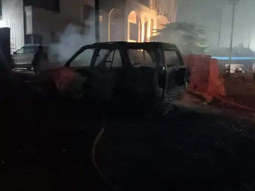 घर के सामने खड़ी सफारी में लगी आग:किसी शरारती तत्व द्वारा आग लागने की आशंका, पुलिस जांच में जुटी