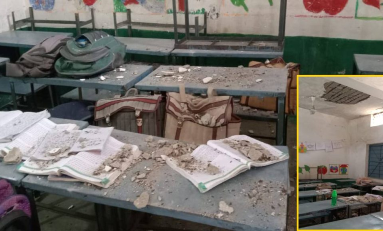 स्कूल का गिरा छत, एक छात्रा को आई चोट, स्कूल में मची अफरा-तफरी