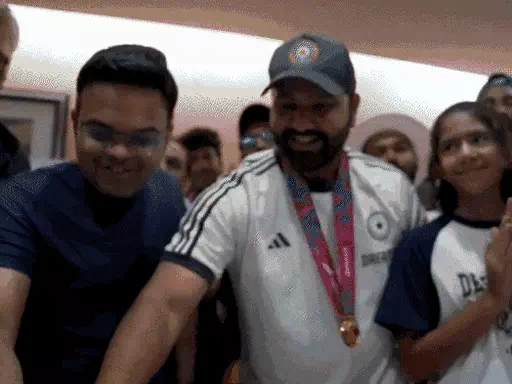 दिल्ली एयरपोर्ट पहुंचने के बाद भारतीय कप्तान कप्तान रोहित शर्मा, BCCI सचिव जय शाह और प्रेसिडेंट रोजर बिन्नी ने केट काटा। उसके बाद टीम होटल ITC मौर्या के लिए रवाना हो गई। यहां भारतीय फैंस अपने चहेते हीरोज की एक झलक पाने के लिए बेताब दिखे।