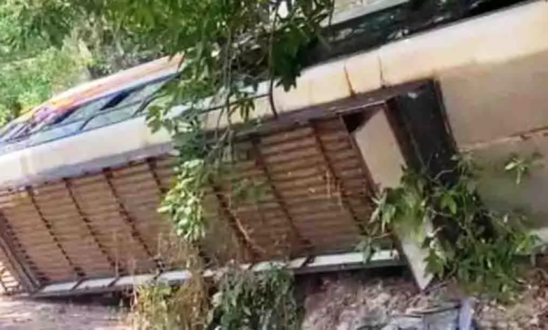 पेंड्रा जा रही बस अनियंत्रित होकर पलटी, दो लोग गंभीर