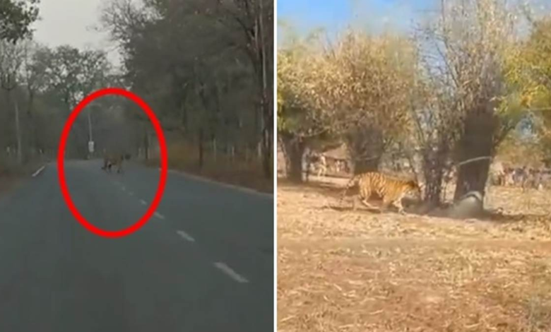 cg में रोड क्रास करते दिखा बाघ, राहगीर ने बनाया Video, ग्रामीणों में दहशत, वन विभाग सक्रिय